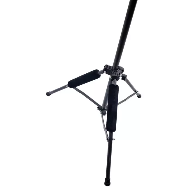 Os apoios almofadados possuem acabamento camurçado, evitando arranhões no instrumento, e os pés antiderrapantes arredondados previnem quedas causadas por "topadas" em quinas.